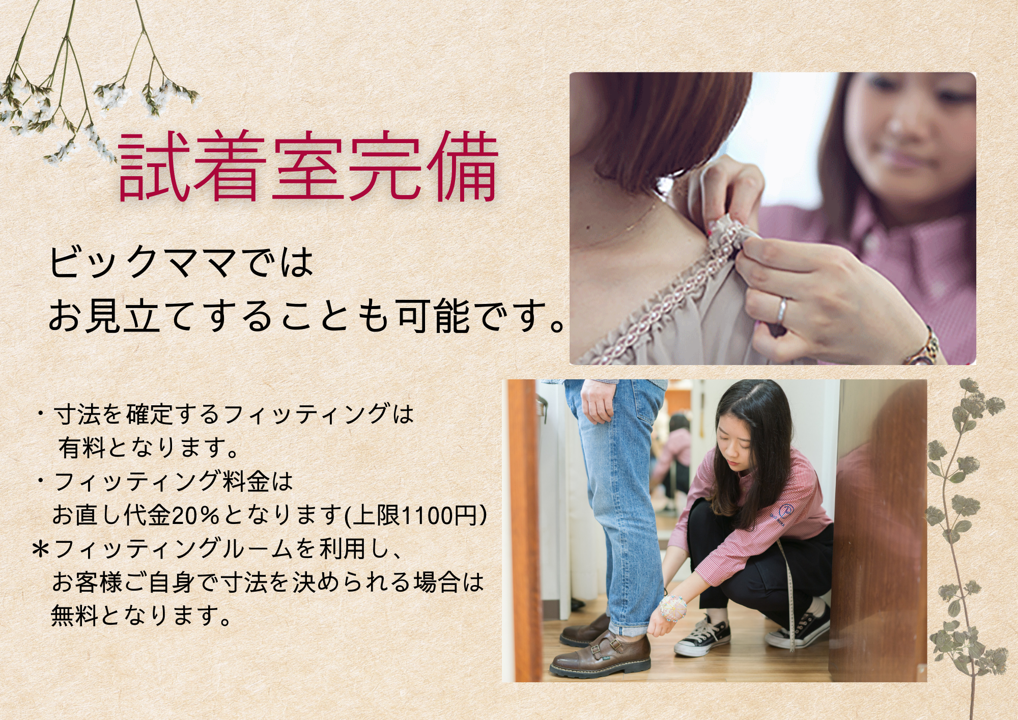 寸法を確定するお見立ては有料となります。