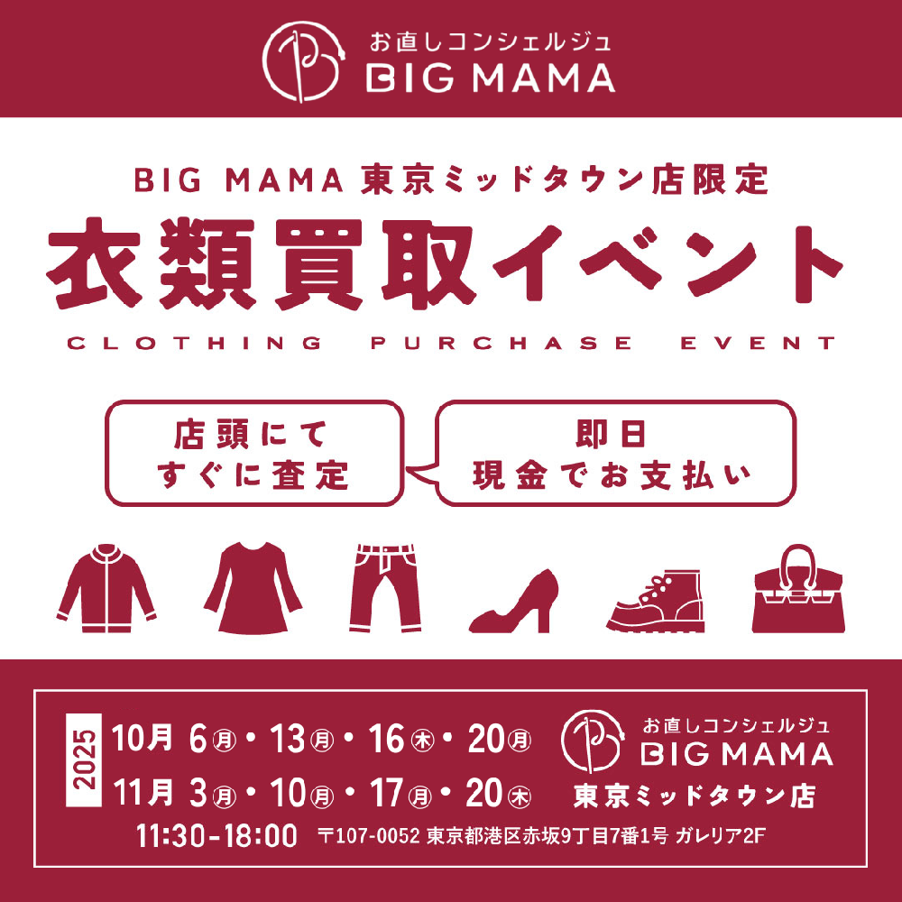 ミッドタウン店!衣類買取イベント|お知らせ News お知らせ ホームお知らせ 2025.10.01 お知らせ ミッドタウン店!衣類買取イベント 9月も大好評でした、衣類買取イベント。10,11月も開催いたします!対象の日には、買取専門スタッフが在住しておりますので、お気軽にご相談ください♪ご来店お待ちしております! 一覧へ戻る Category お知らせ キャンペーン Archive 2026 2025 2024 2023 2021 2020 2019 2017 2016 テーマを表示 お困りごと事例