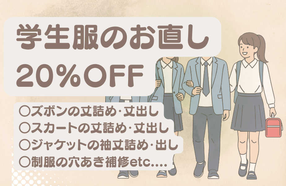 また、ほつれや破れ、ボタンやファスナーの交換修理も承ります。